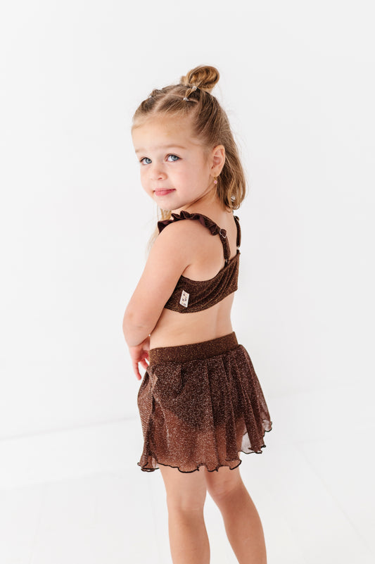 Brown Metallic Kids Swim Skirted Bottom