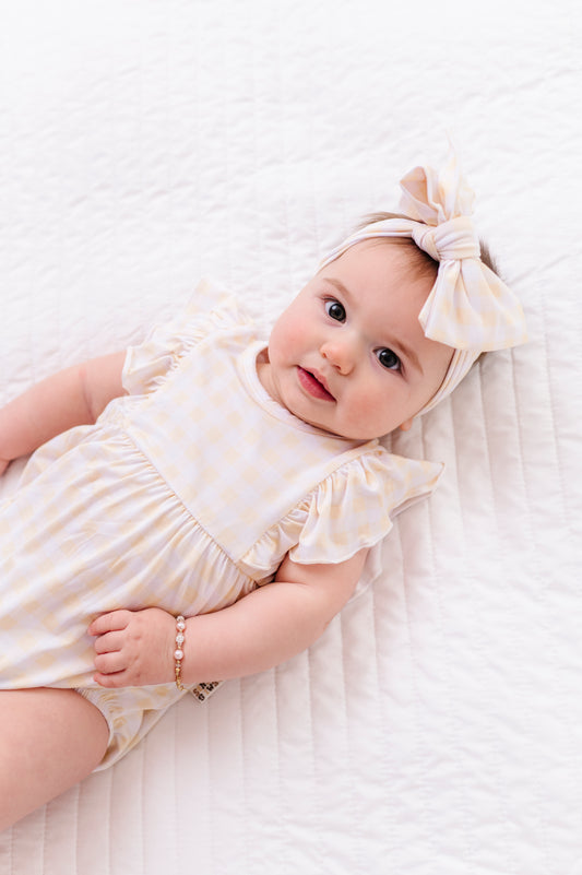 Butter Gingham Short Sleeve Ruffle Bubble