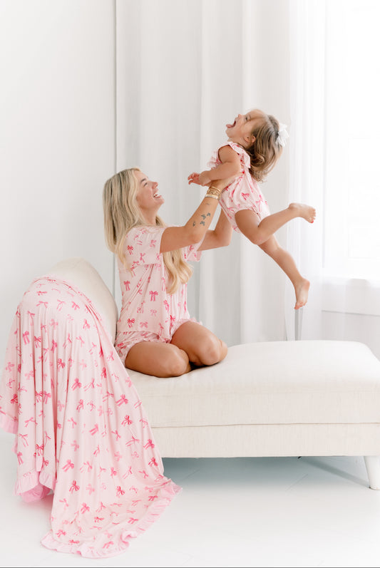 Georgia Checkerboard Ruffle Bamboo Blanket