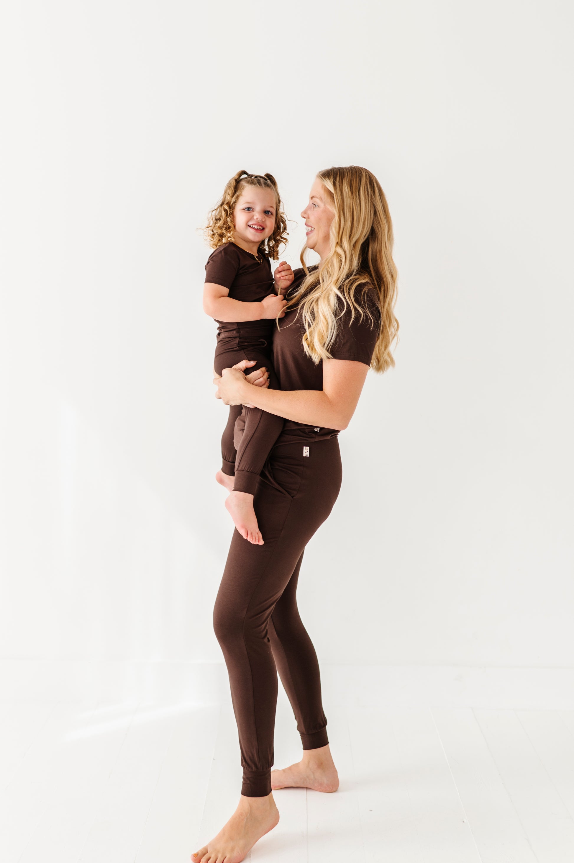 This set includes a solid short sleeve t-shirt and jogger pants, making it perfect for both men and women.