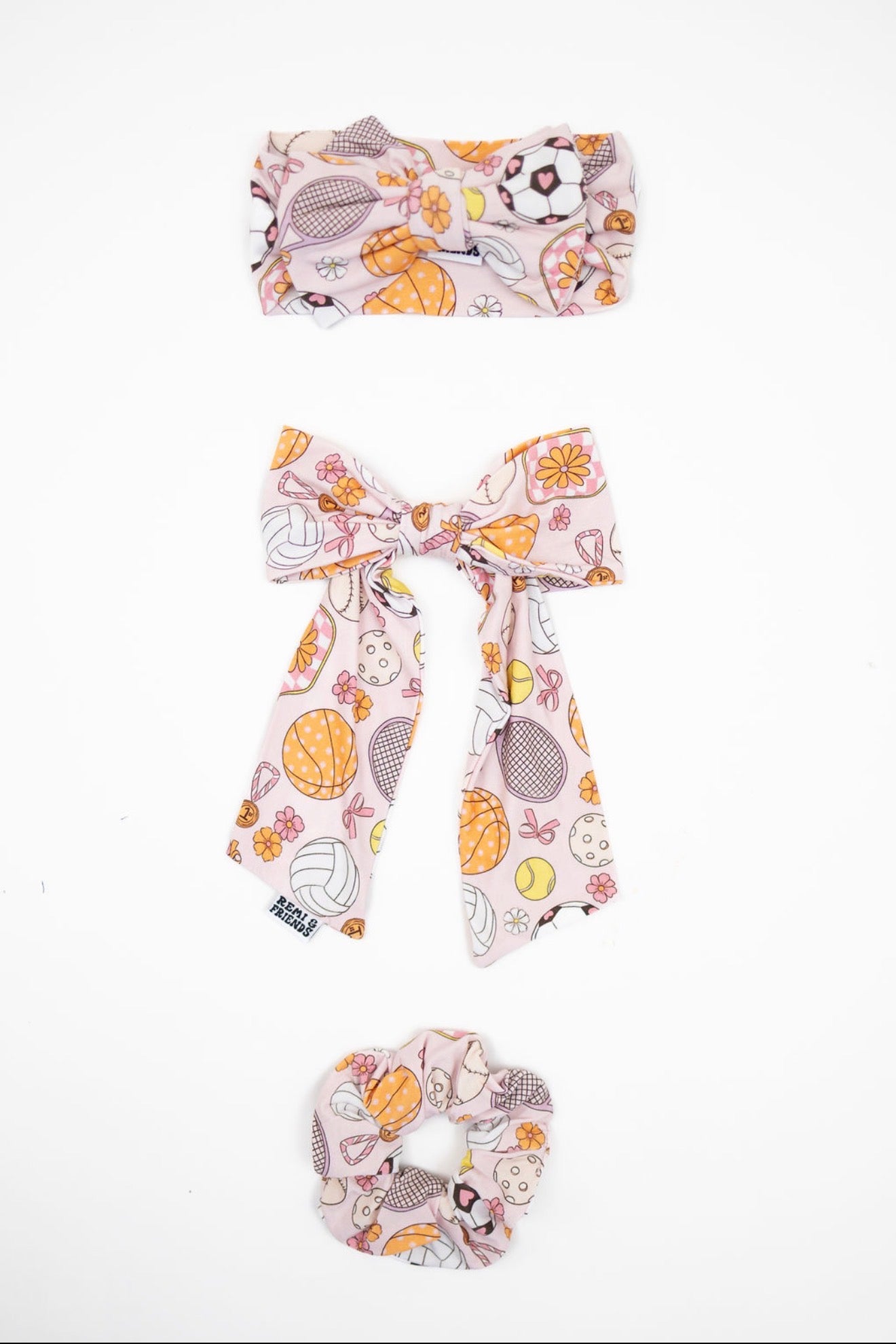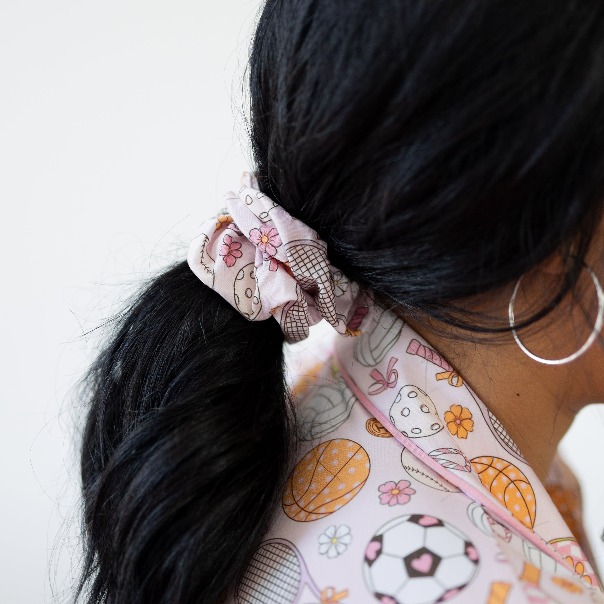 Elevate your game with the Game Winning Dreams Scrunchie. Made of silky bamboo casing, this scrunchie offers a firm and athletic grip, perfect for sports-loving girls. Plus, its material is the same as our beloved PJs, ensuring both style and protection for your hair.