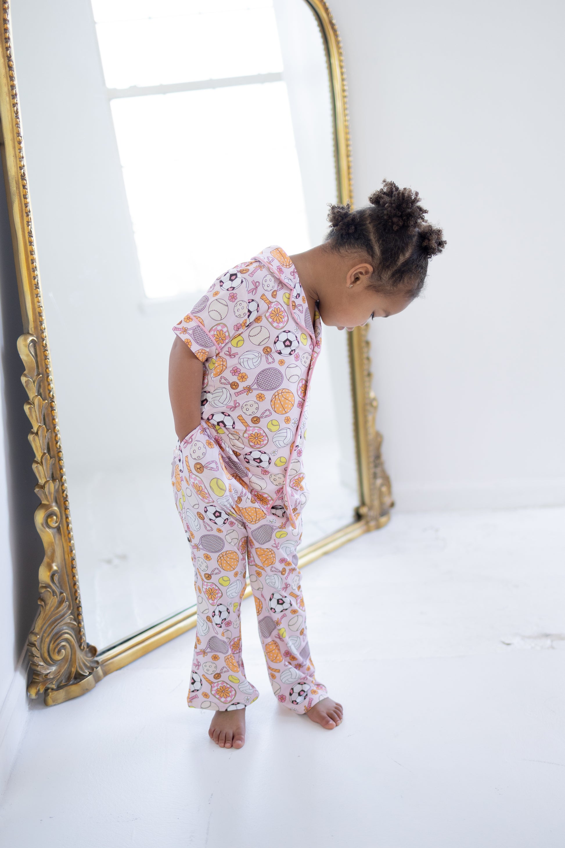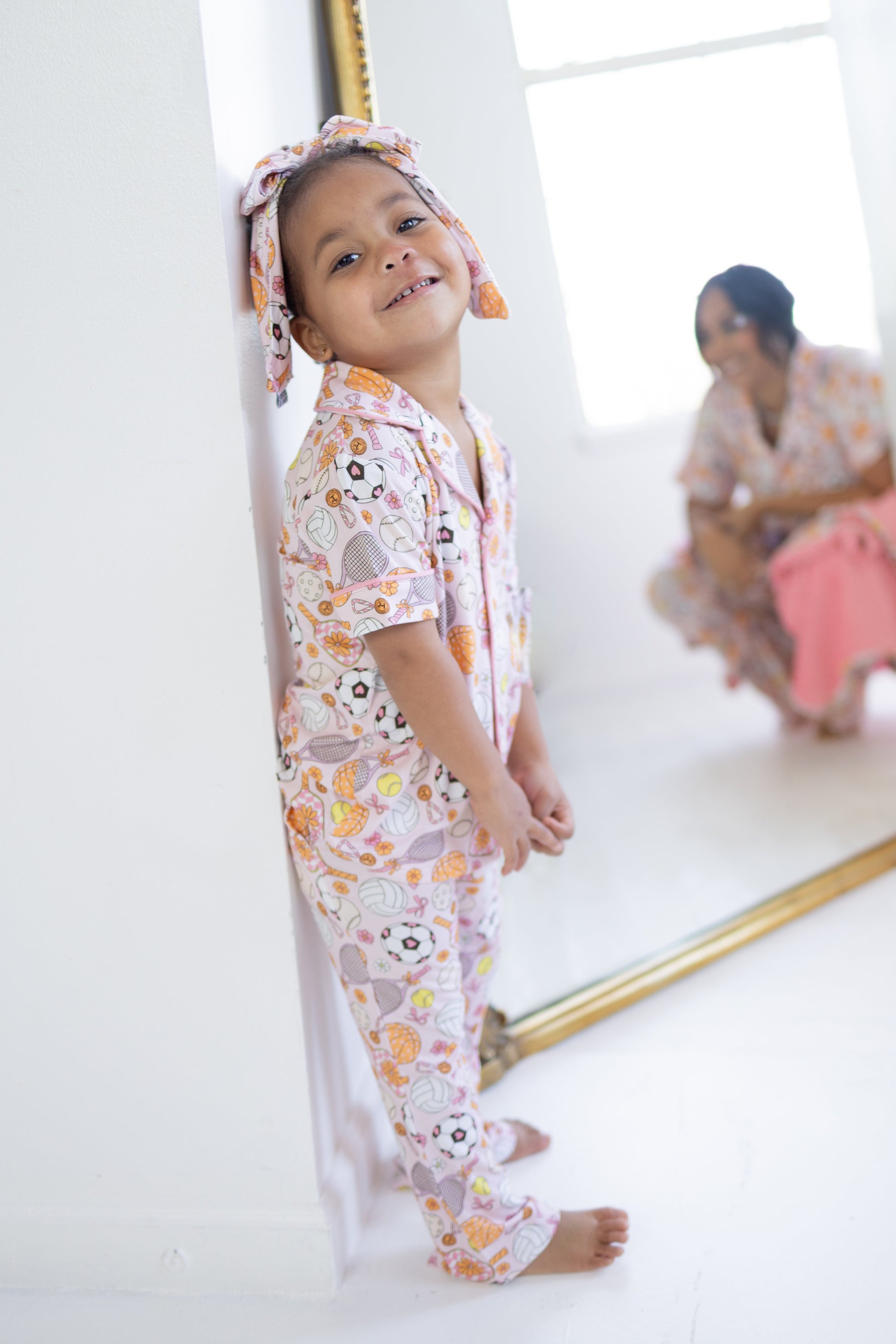 Introducing our Game Winning Dreams Short Sleeve Flare Button Up Set, perfect for a more elevated look to your PJ collection. This set includes a short sleeve button-up shirt and a flare pant with an elastic waistband and functional pockets. Comfort and style combine for a flawless lounge ware!