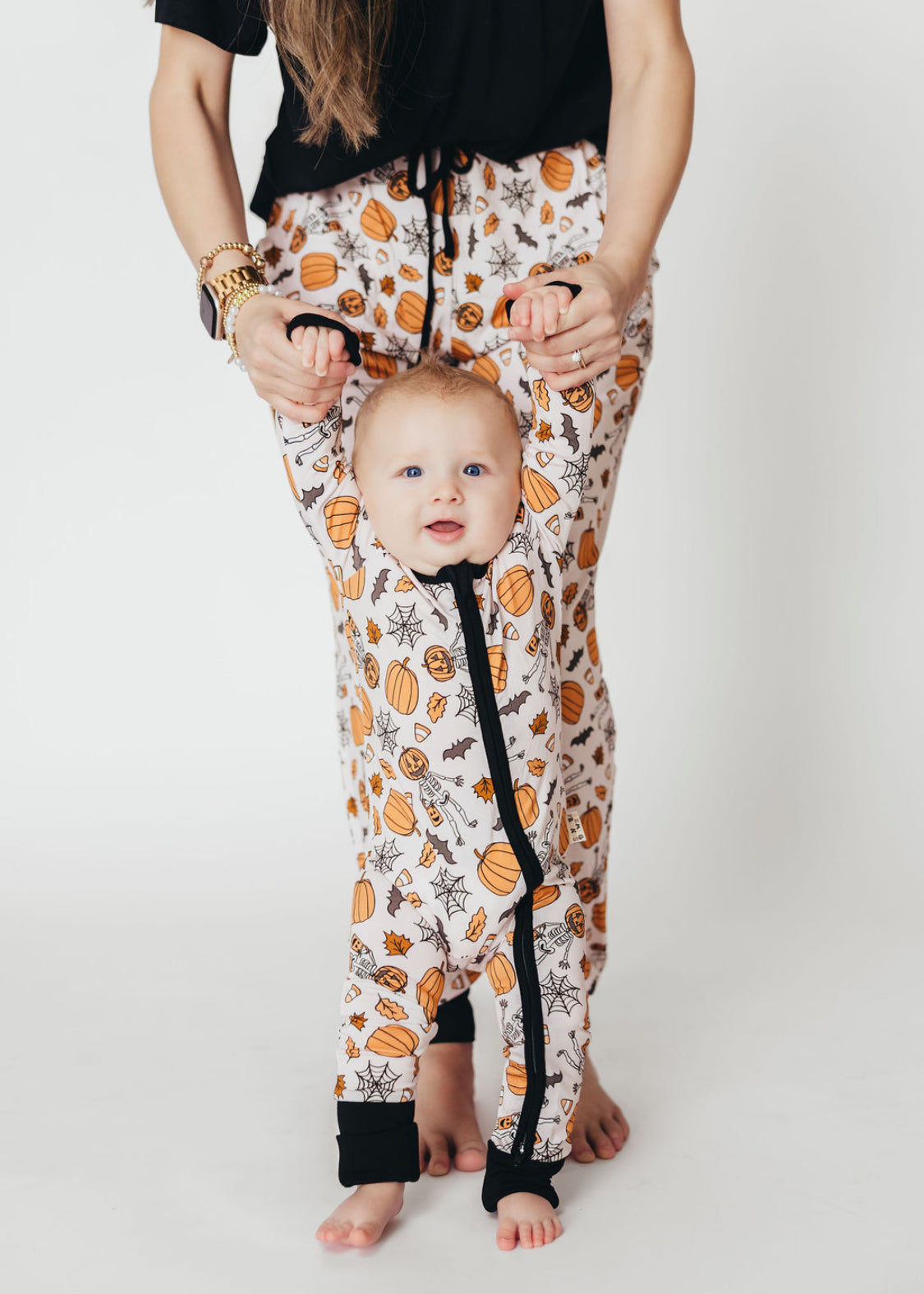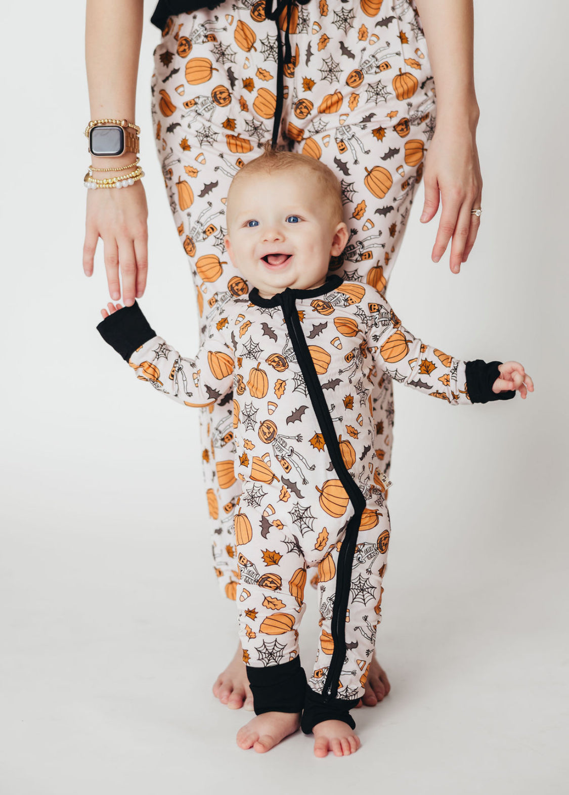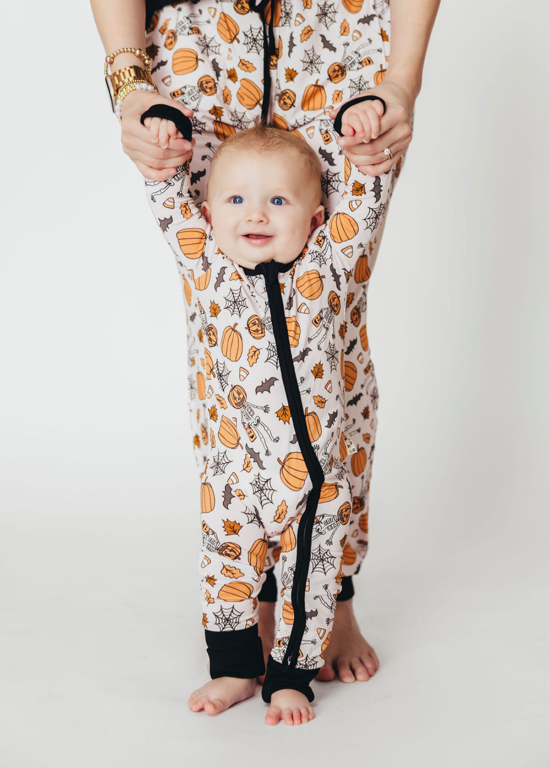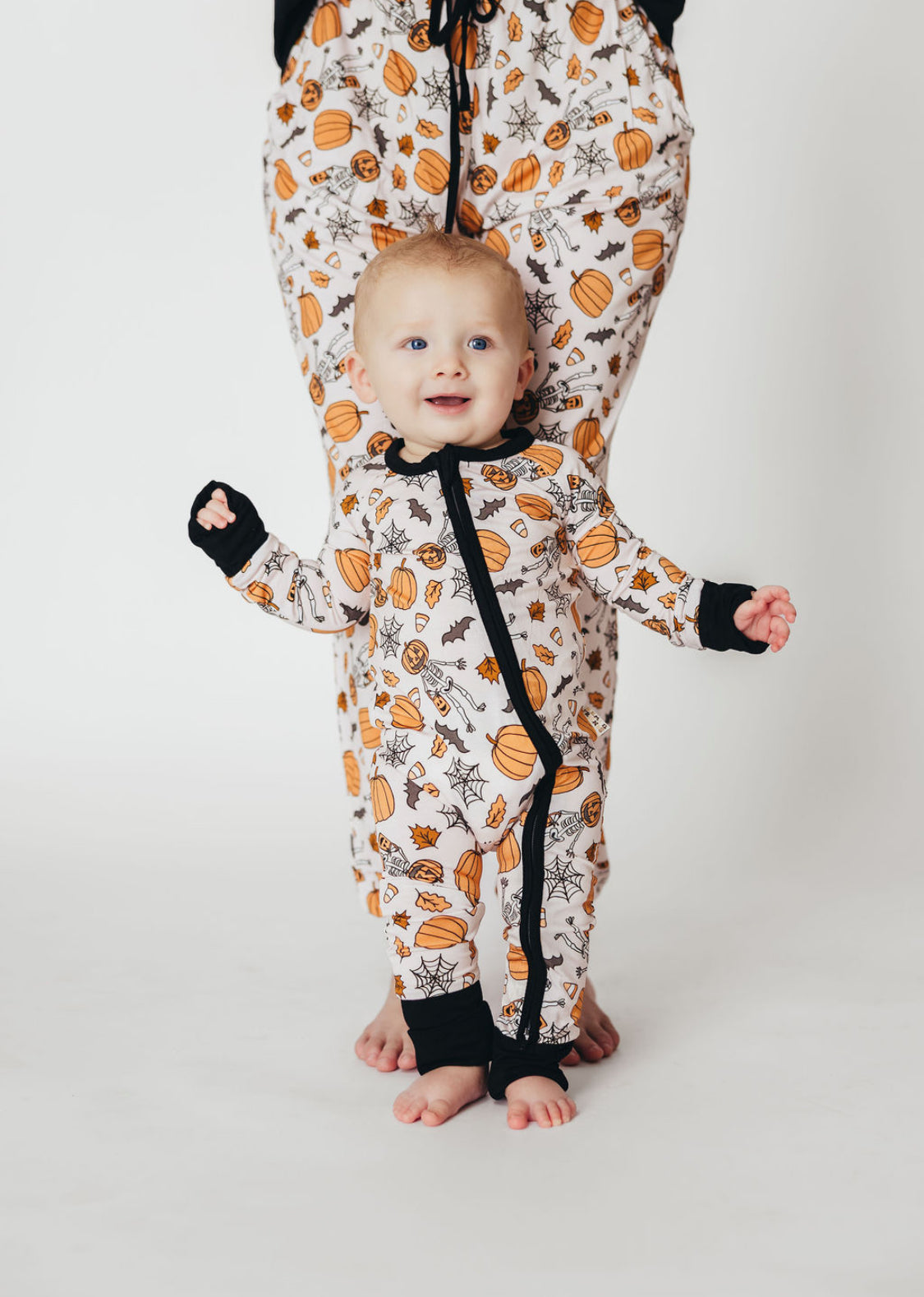 Introducing Jack O' Bones Zippy, the perfect romper for your little one! Made with soft and durable fabric, this romper features a playful Jack O' Bones design that will make your baby stand out. With zippers for easy changing, your little pumpkin will be spooktacularly comfortable.