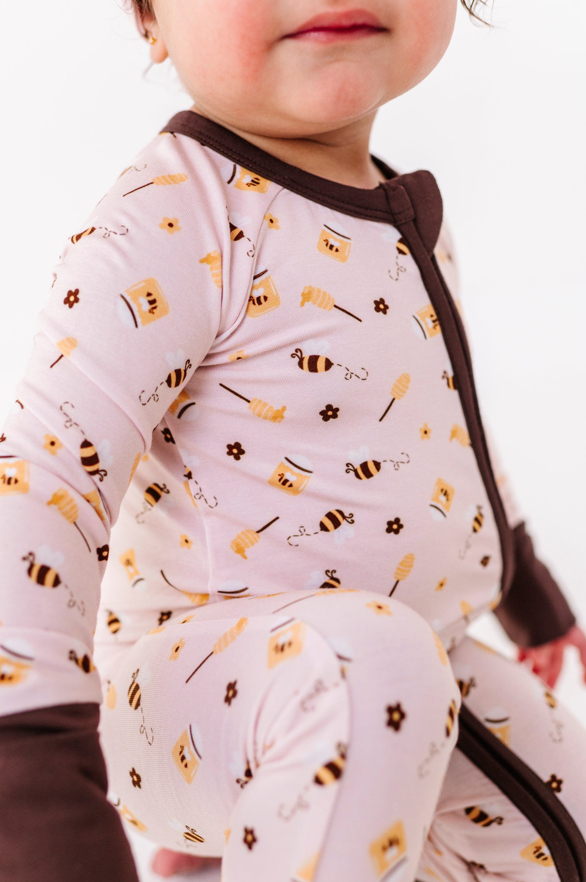 The bees and honey pots add a fun touch to the zippy design, perfect for your little one. Plus, the convertible feet and two-way zips make it both practical and adorable. Get ready for some stylish and playful moves!