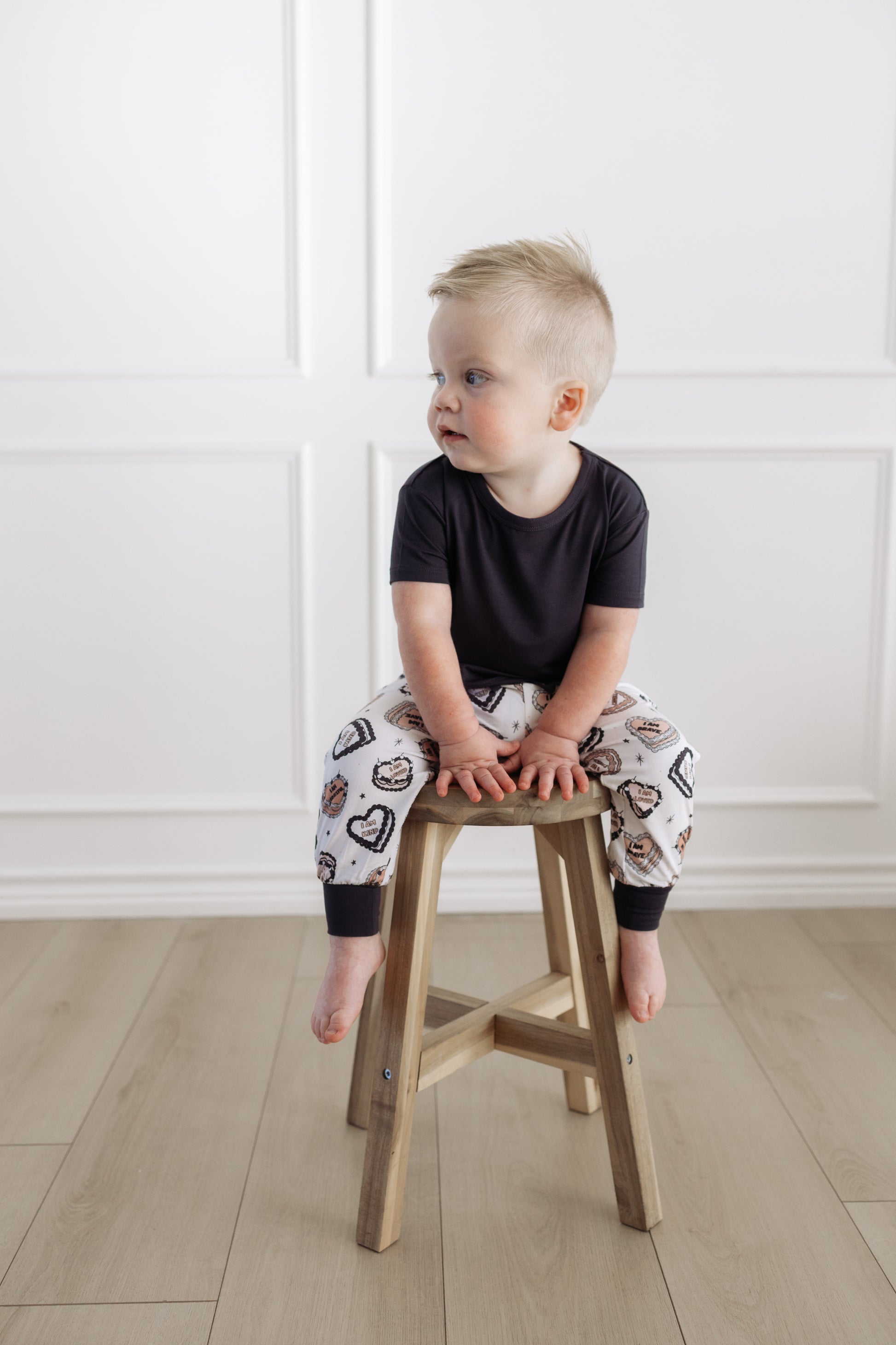 Get ready to fall in love with our Love Is Sweet Kids Jogger Set! Featuring a comfy jogger lounge pant with functional pockets and a drawstring waist, paired perfectly with a solid coordinating tee shirt. A match made in heaven for your little ones!